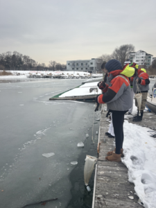 The temperatures were frigid and the harbor is iced-in, but there is still science going on. Our High school Research Intensive students are breaking the ice to reach water because science doesn’t stop for the weather. They’re collecting water to do plankton population studies and using settling plates to monitor native and invasive species. Want to work in environmental science? Get used to the extremes.