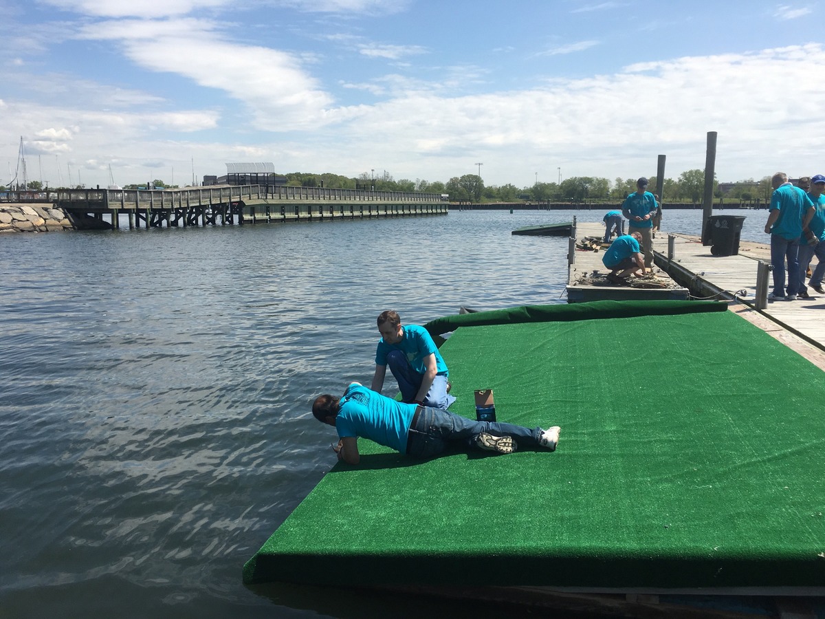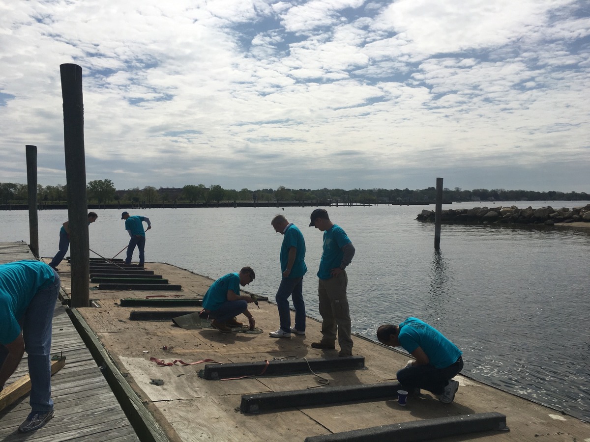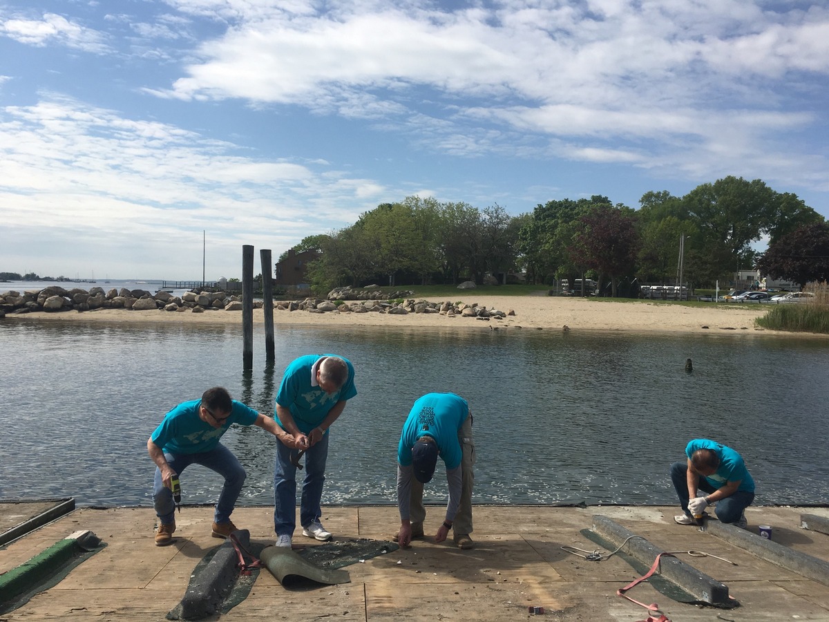 Thanks so much to XL Catlin for all your hard work at the SoundWaters Harbor site in Boccuzzi Park today. The group cleared all the brush from the around the portable classrooms, repaired the small boat sailing dock, cleaned out and organized the classrooms, cleared out the brush and did a coastal cleanup. Thanks you so much for all your hard work!